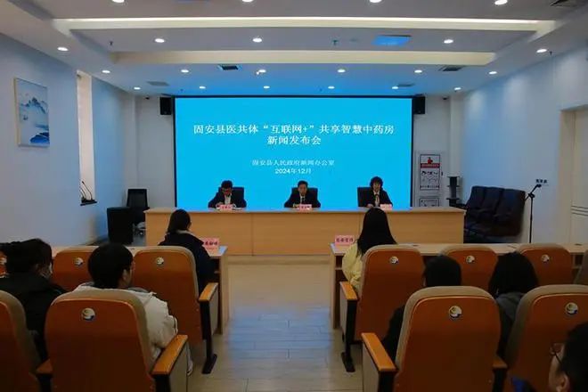 12月19日下午,固安县举行医共体“互联网+”共享智慧中药房新闻发布会,对卫生健康局2024年医共体“互联网+”共享智慧中药房建设运营情况进行发布,并现场回答媒体记者提问。