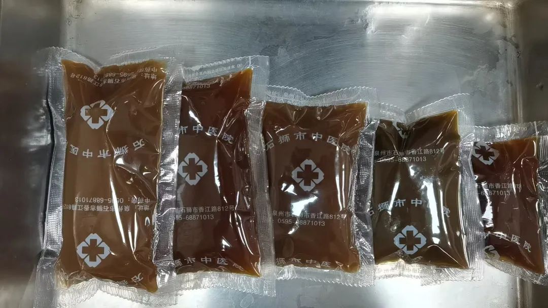 眼前这一包包温热的中药液,都是经过一道道精细工序熬制而成的高品质药液。其工序涵盖严格把控饮片质量——处方审核——处方调剂——调剂复核——智能加水——煎煮——分包——取药,环环相扣,一丝不苟。