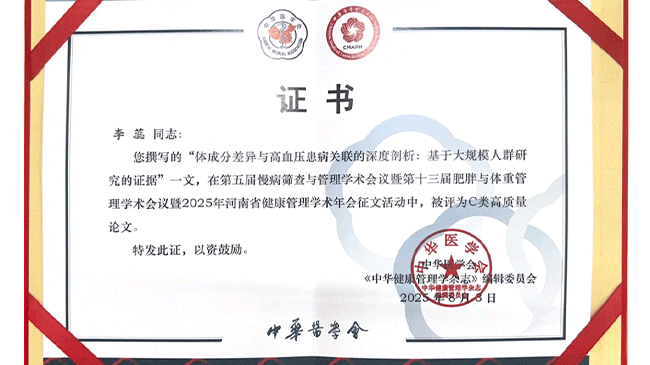 在本次会议中,东华原除了凭借优越的健康体检设备精彩亮相,引发关注;此外,来自东华原研发中心李蕊的论文《体成分差异与高血压患病关联的深度剖析:基于大规模人群研究的证据》被评为C类高质量论文。