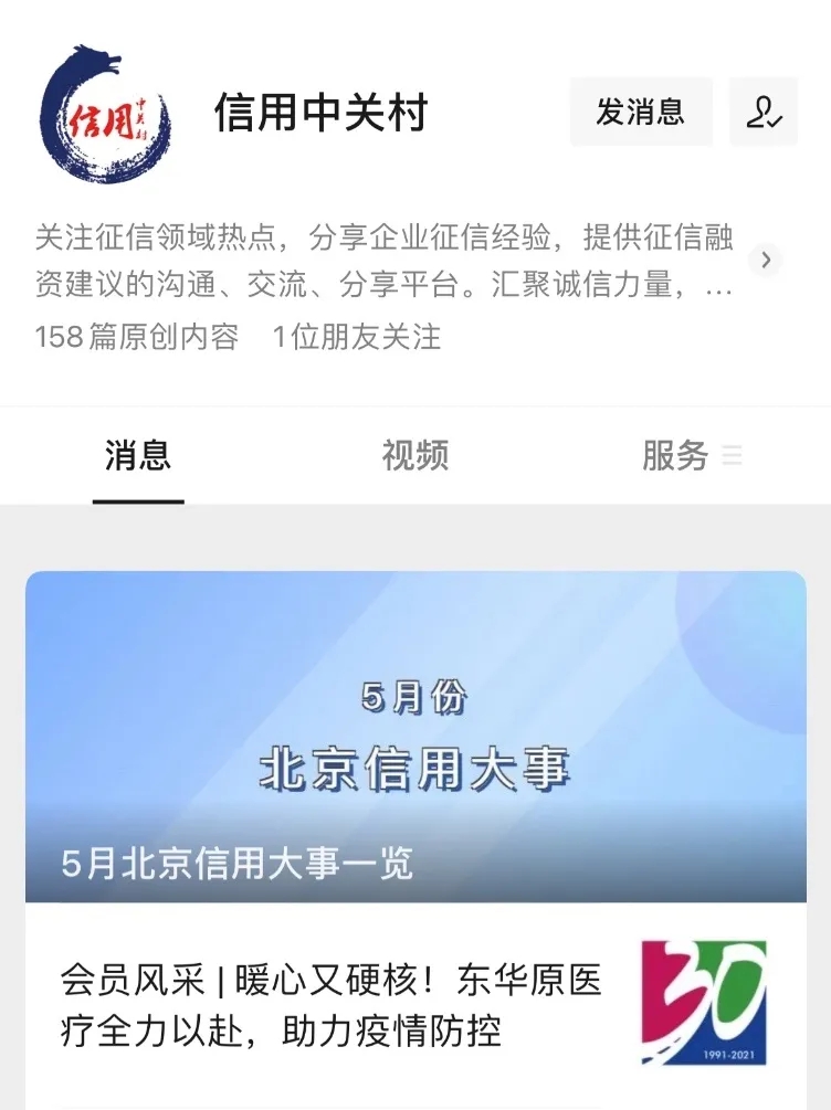 “信用中关村”公众号报道东华原医疗风采——