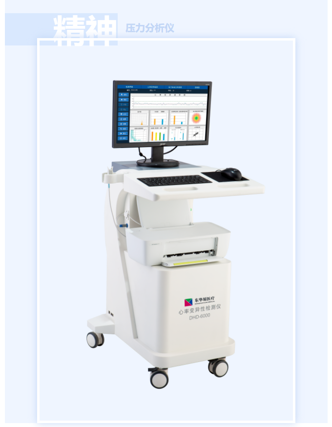 东华原医疗心率变异性检测仪(精神压力分析仪)采用心率变异性(HRV)理论,指夹传感器式非侵入性检测,无创无辐射,测量体验感舒适。可综合评估受测者的身体疲劳、抗压能力、压力指数、自主神经系统活性与平衡性等项目。