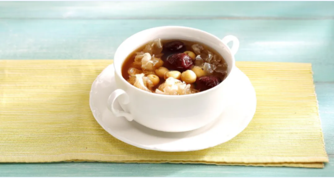 莲子味甘涩、性平,银耳味甘淡、性平,二者皆可滋阴、润肺,与大枣同煮,更增调和气血之效,对于女性而言,更是一道不可多得的美容养颜佳品。