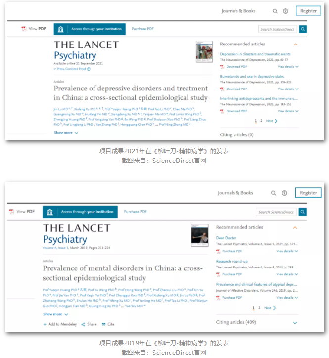 “中国精神障碍疾病负担及卫生服务利用的研究”(简称中国精神卫生调查)是由北京大学第六医院等44家单位,历时3年完成的科研项目,是我国首次全国成人精神障碍流行病学调查,覆盖全国31个省市自治区 (不含港澳台)18岁以上社区居民,在157个县/区、1256个村/居委会中抽取受访者32552人。针对抑郁障碍开展的研究成果9月份已在《柳叶刀-精神病学》在线发布,即将10月见刊。