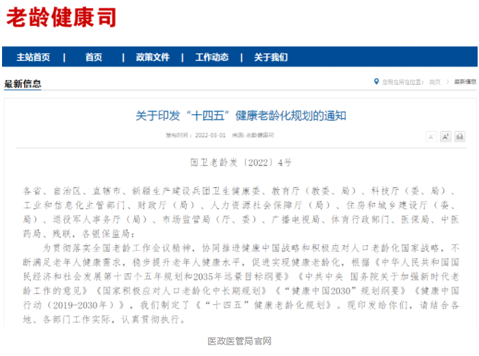 健康前沿 | 十五部门联合印发《“十四五”健康老龄化规划》
