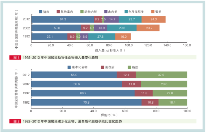合理膳食是影响心血管健康的因素之一。报告显示,中国居民总能量摄入呈下降趋势,蛋白质摄入量维持稳定,碳水化合物功能比呈明显下降趋势,脂肪功能比呈上升趋势,且已超过膳食指南推荐的上限水平(膳食指南推荐范围:20%—30%),农村脂肪供能比首次突破30%的推荐上限;维生素和矿物质摄入不足的风险依然存在。