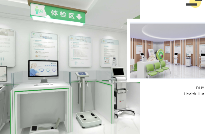 健康小屋可配备医用电子血压仪、人体成分分析仪、身高体重测量仪、精神压力分析仪、中医体质辨识仪、超声骨密度仪等十数台设备,并可根据实际需求个性化增减配置。检测者可以在健康小屋一站式完成血压、人体成分、精神压力、动脉硬化、骨密度、血糖、血脂等多项检测项目。东华原7大系列20余款健康体检设备,通过大数据平台互联互融,为检测者提供历史检测数据,并提出未来健康管理建议,健康管理全方位覆盖。