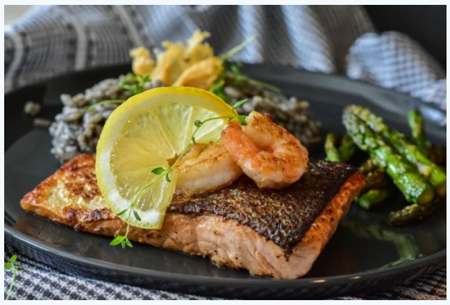 常见的地中海饮食:蔬菜沙拉(橄榄油、柠檬、香料和大蒜为调料)、海鱼、虾、红酒、酸奶、奶酪、豆子等。