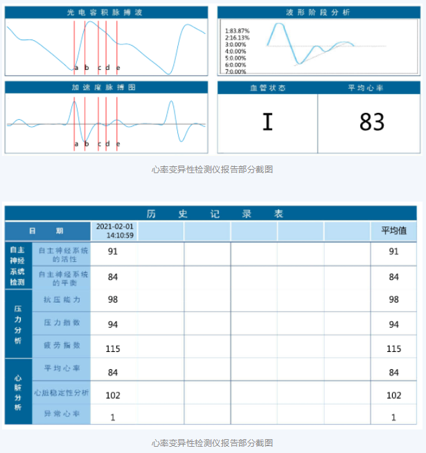 东华原心率变异性检测仪应用“HRV+APG(加速度脉搏波, Accelerated Photoplethysmography)”原理,符合欧洲心血管学会(ESC),北美起搏和电生理学会(NASPE)共同组建的专题委员会所制定的关于HRV理论标准,自动生成HRV全面分析报告,评估整体心理健康状况。