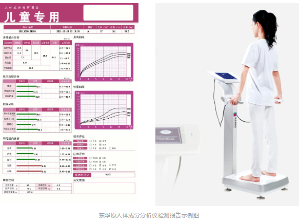 人体成分分析仪是一款智能、高端的健康指标测量仪器,应用多频率生物电阻抗测试原理,采用8点接触式电极法测,可准确地评估人体肌肉、脂肪、水分等体成分的含量及所占比例,还可测量「身高曲线」、「体重曲线」、「营养处方」、「运动处方」等,不仅能够反映人体的营养状况、肥胖、浮肿等身体健康情况,还能提供相对应的营养处方和运动方案,为每个测试者提供独立的健康分析数据。