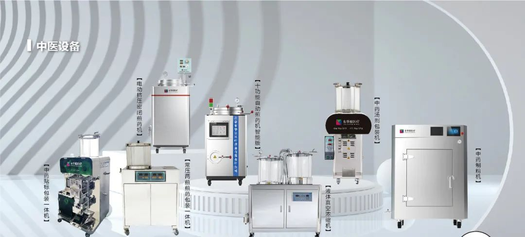 东华原依托自身研发优势,具有10大系列,40多个型号的中药煎药包装设备,如:十功能煎药机、常压煎药机、中药制粉机、贴标包装一体机、自动调膏包装一体机等,能够满足不同场景、不同需求的智慧中药房建设需求。