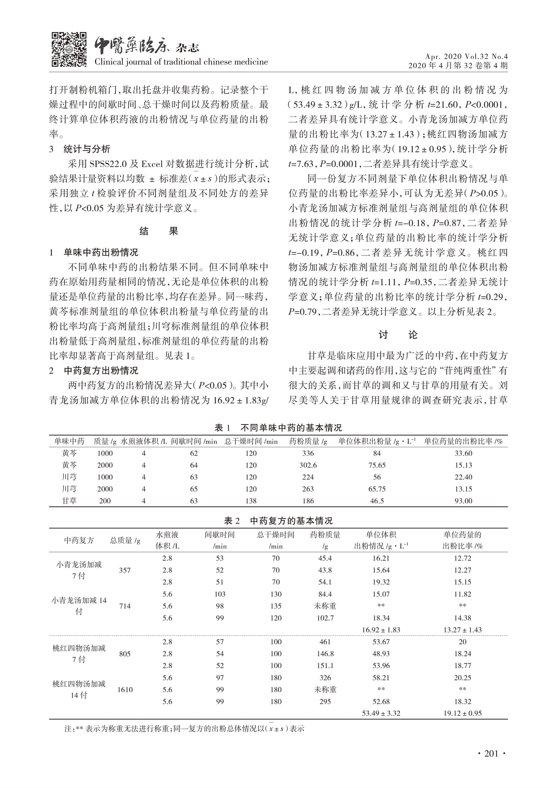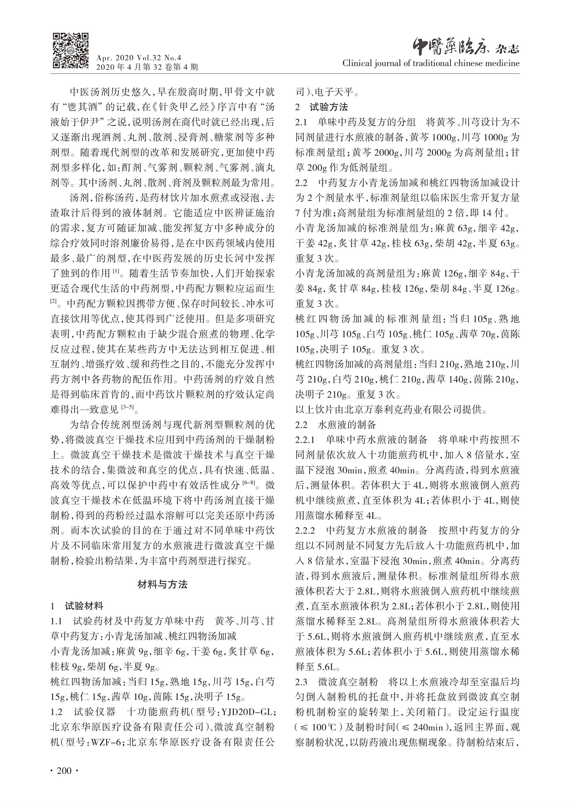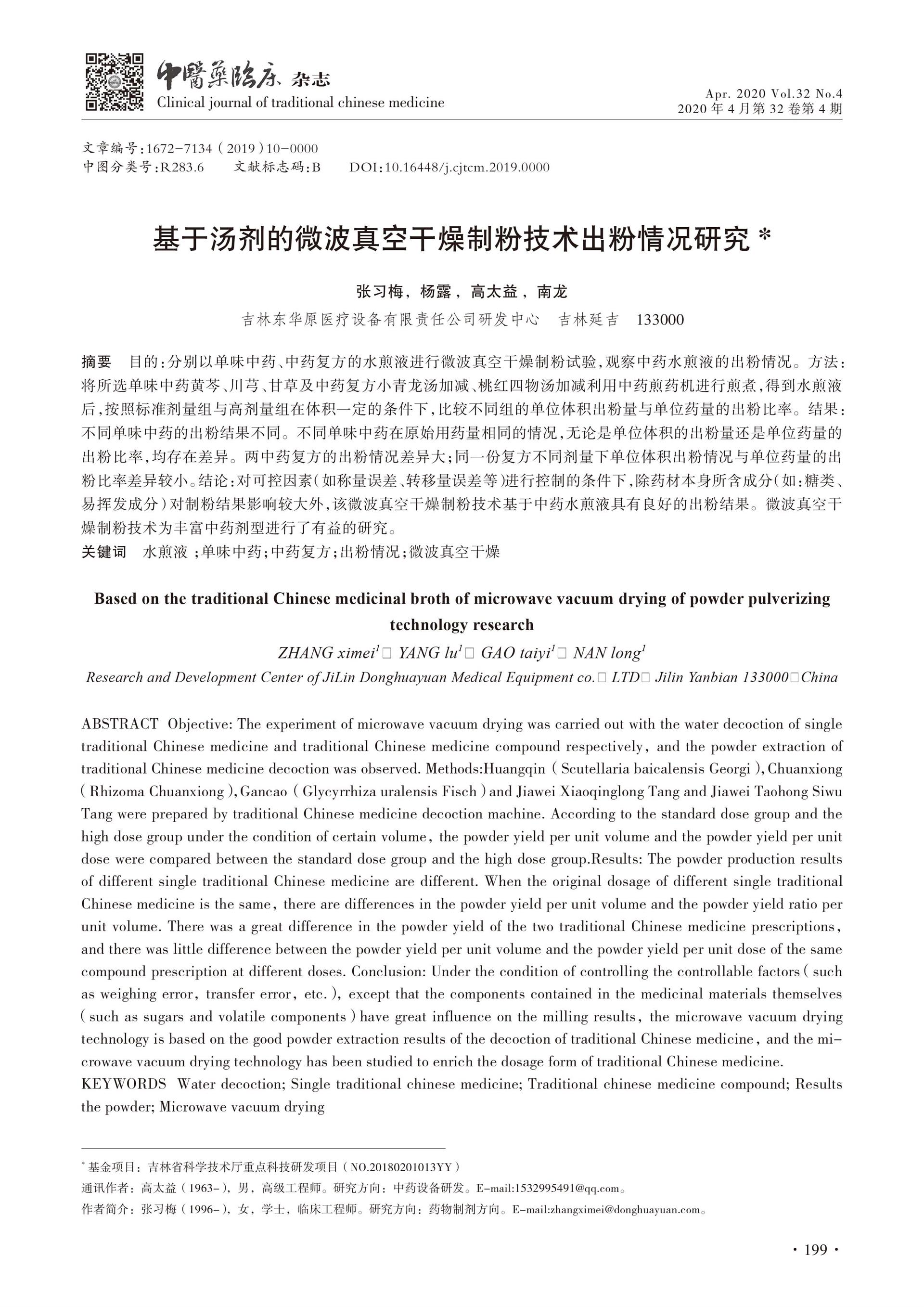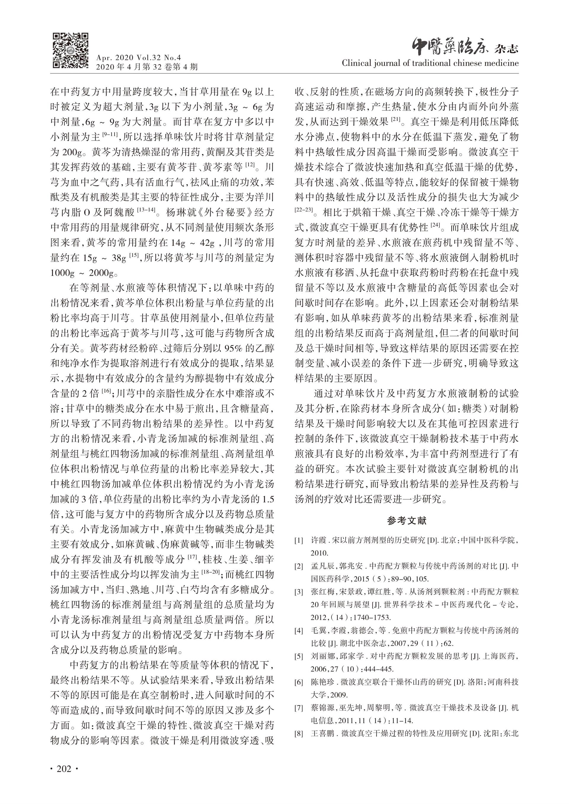 基于汤剂的微波真空干燥制粉技术出粉情况研究