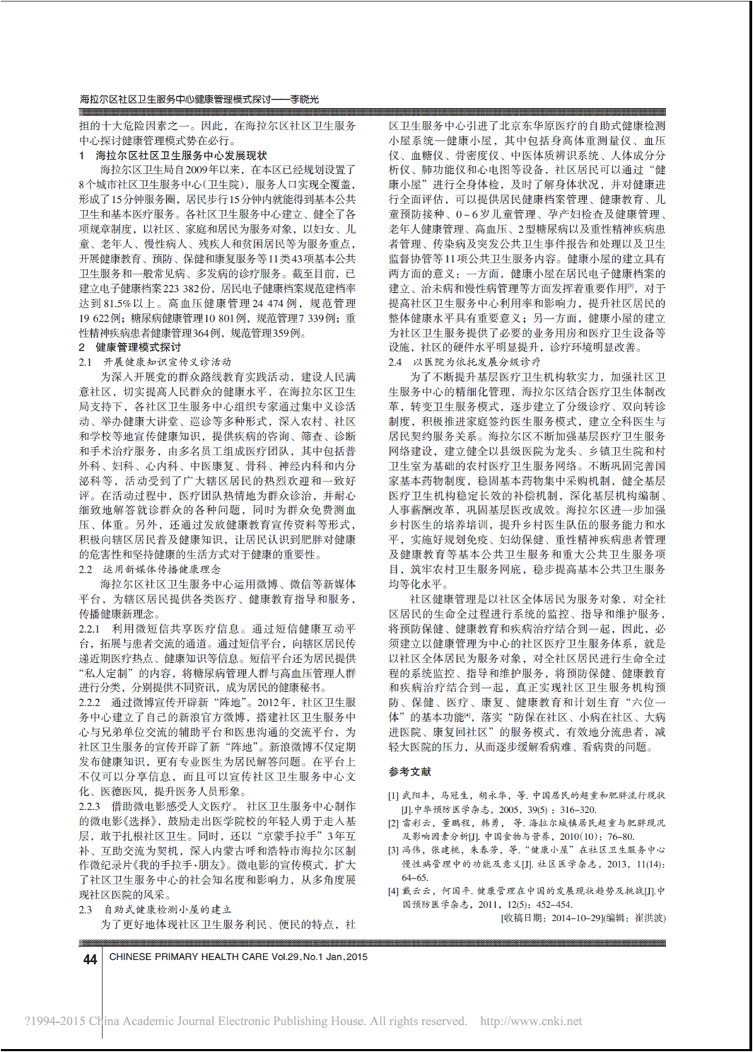 海拉尔区社区卫生服务中心健康管理模式探讨