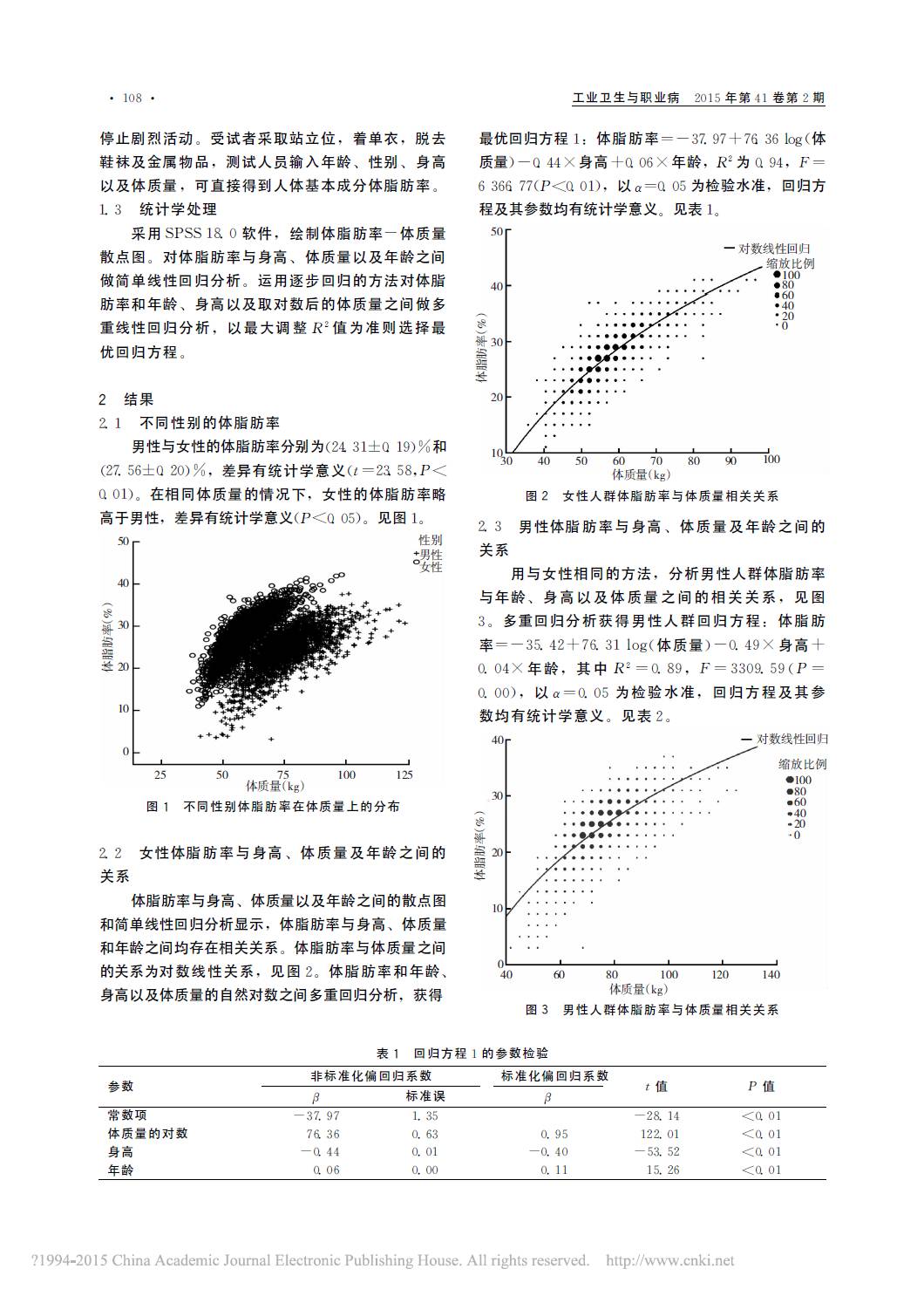 生物电阻抗分析法和双能X射线吸收法测量人体脂肪率的对比研究