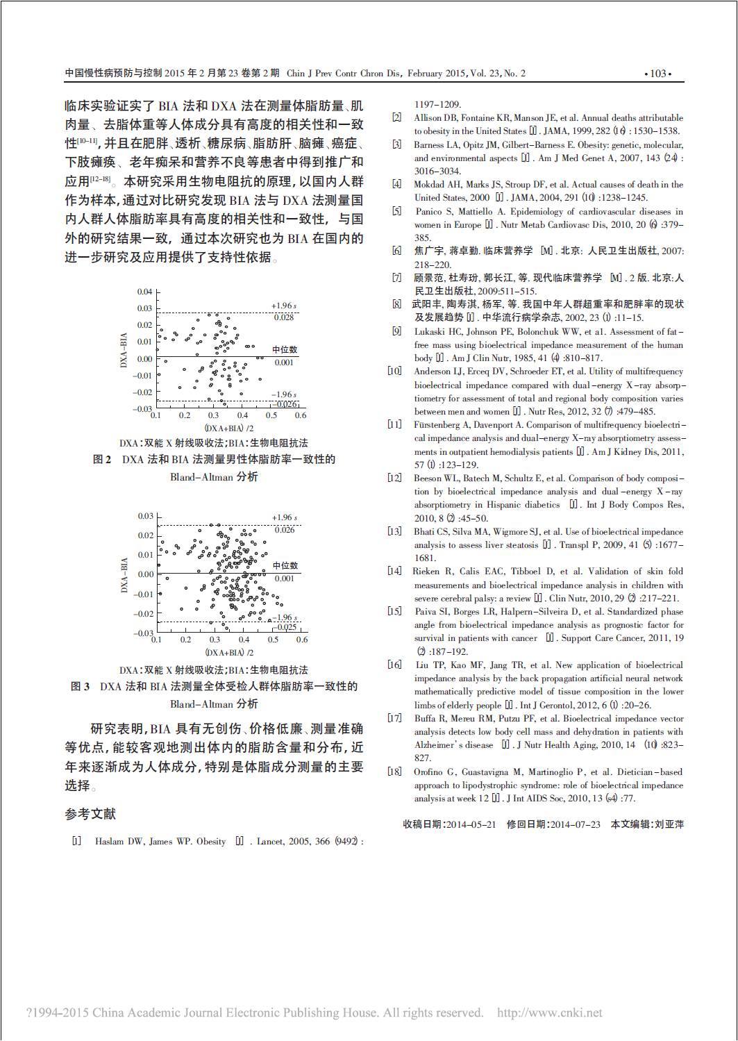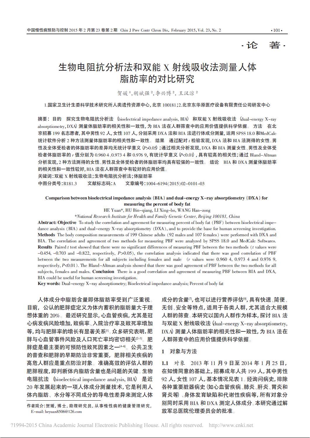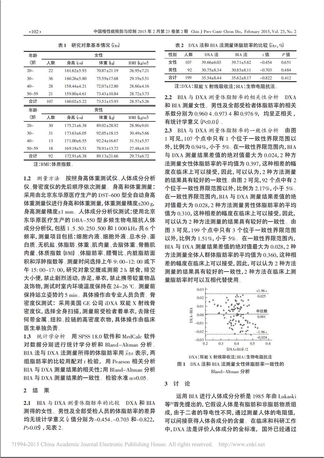 生物电阻抗分析法和双能X射线吸收法测量人体脂肪率的对比研究