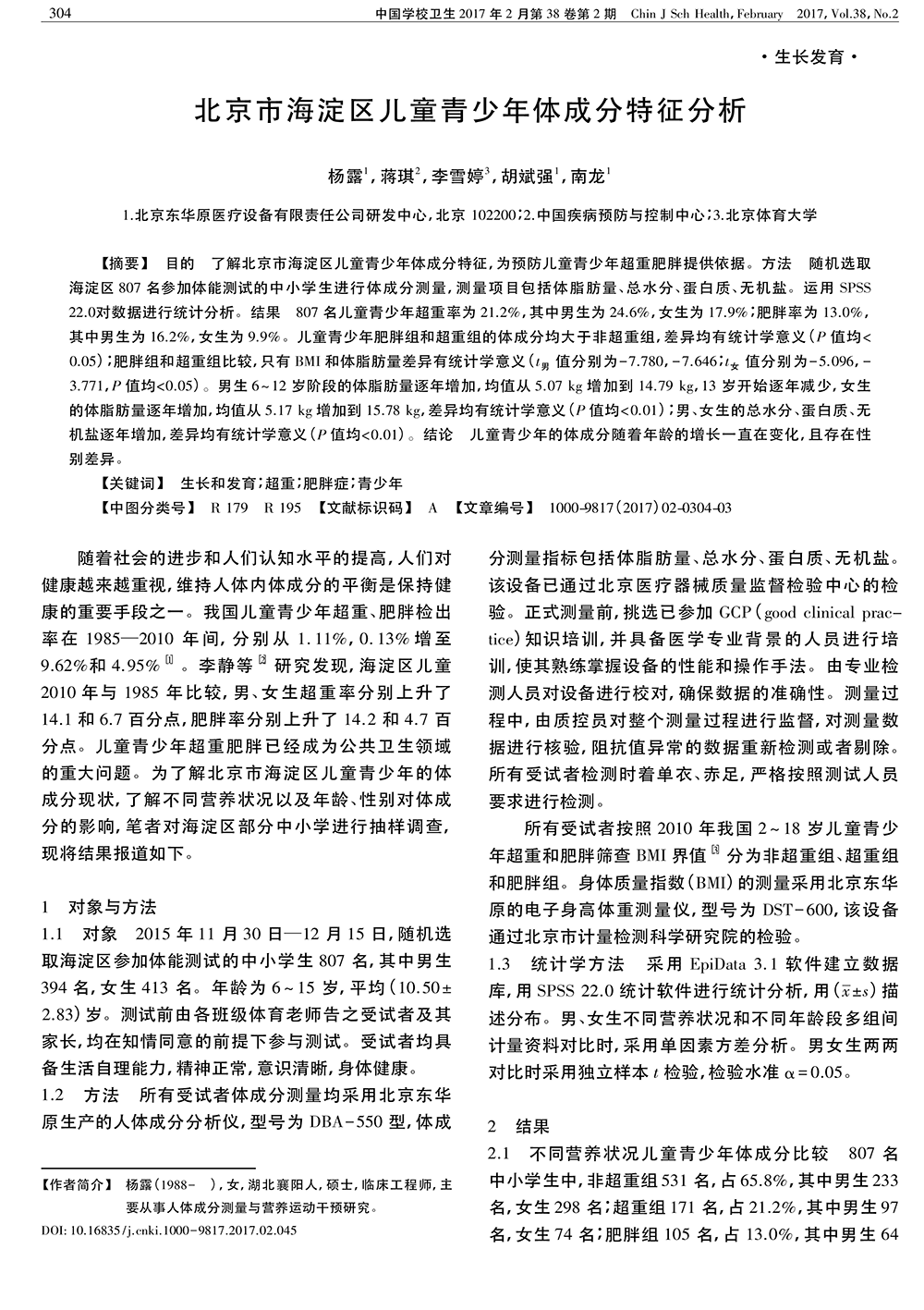 6_15岁北京市海淀区少儿体成分生长发育特征分析