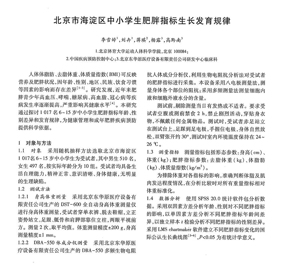 6_15岁北京市海淀区少儿体成分生长发育特征分析