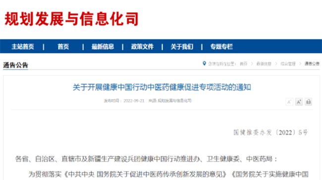 健康前沿 | 《健康中国行动中医药健康促进专项活动》发布