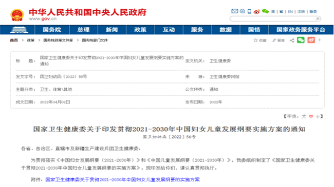 国家卫健委:2021—2030年中国妇女儿童发展纲要实施方案
