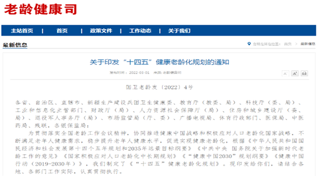 健康前沿 | 十五部门联合印发《“十四五”健康老龄化规划》