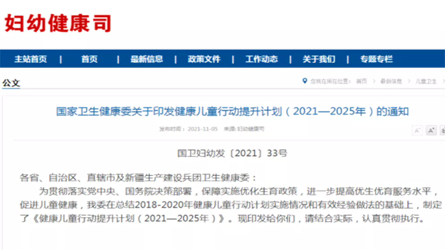 健康前沿 | 国家卫健委:健康儿童行动提升计划(2021—2025年)发布