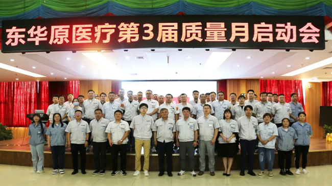 - 2023年全国“质量月”来了, 今年是全国第46个质量月,值此之际,东华原医疗第三届质量月启动会于9月13日在总部多功能厅正式举办,今年的质量月活动主题是“以质量求生存、以质量谋发展、以质量增效益”。“生存、发展、效益”是每个企业永恒的主题,特别是在经历了3年疫情和国际经济发展环境的大背景下,企业更应该以质量求胜、求生、求强。沧州和延吉工厂同步举行活动,全员积极学习和质量意识稳步提升。董事长南龙、总经理