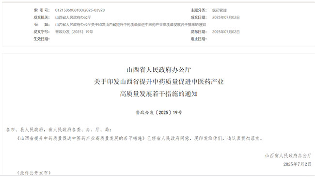 - 为贯彻落实《国务院办公厅关于提升中药质量促进中医药产业高质量发展的意见》(国办发〔2025〕11号),坚持以提升中药质量为核心,以科技创新为动力,以产业融合为突破,加快构建现代化中医药全产业链体系,推动中医药产业高质量发展,现提出如下措施: